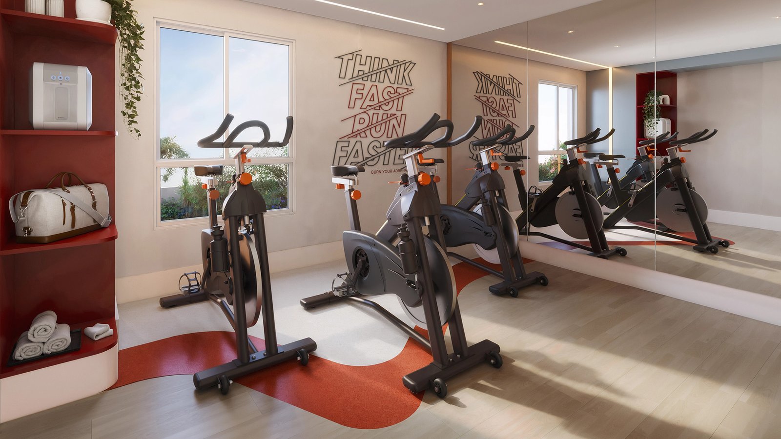 A área de exercícios físicos do Epic Jundiaí foi pensada para ser 360, ou seja, está preparada para a realização de todas as modalidades de ginástica. A academia terá pé-direito duplo e contará com equipamentos de uso contínuo para os moradores treinarem sem precisar sair do condomínio. O espaço será integrado à sala de pilates, à sala de spinning e ao crossfit externo, todos com equipamentos de última geração.